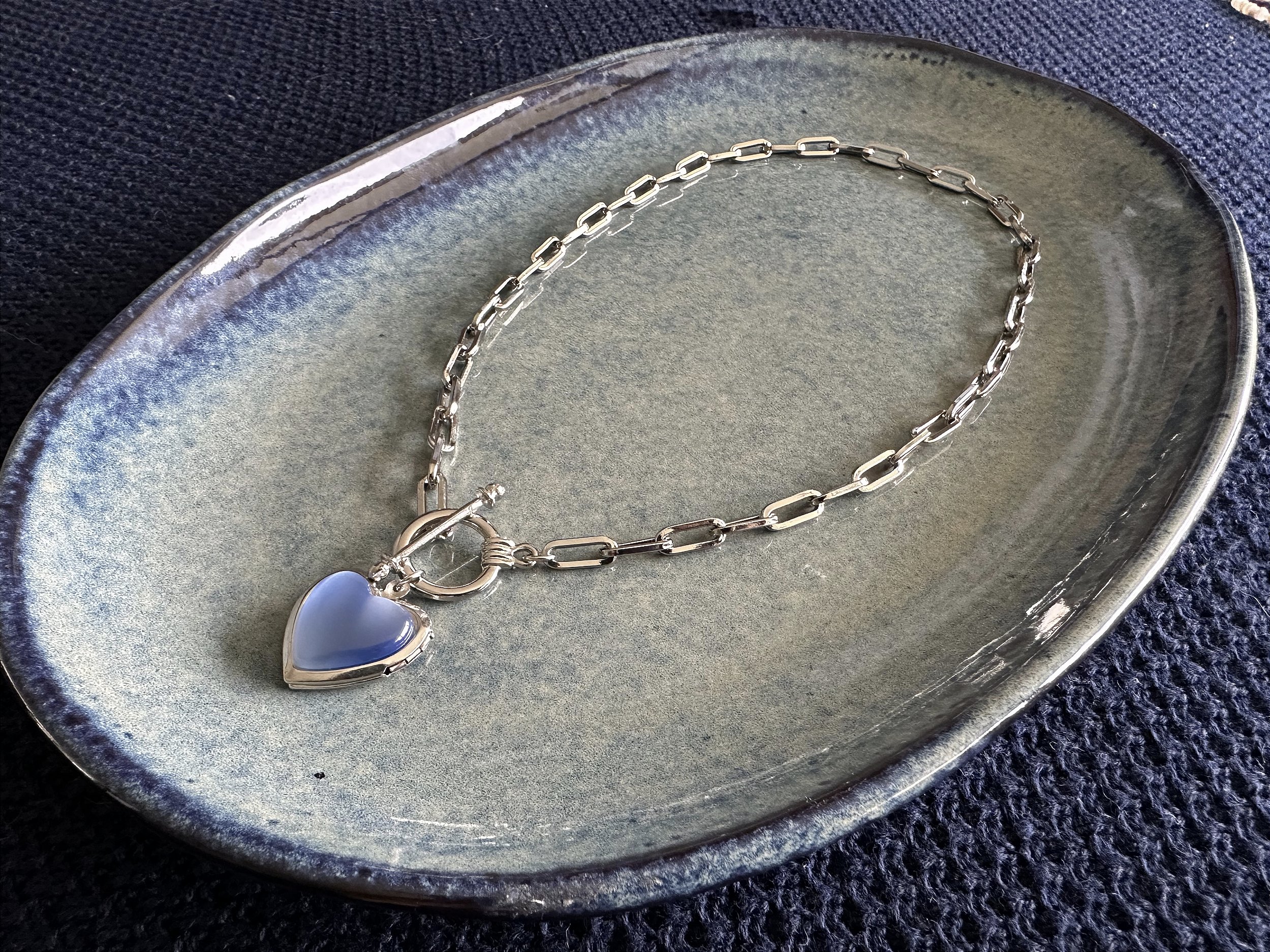 Colar corrente elos com pingente de coração com abertura para colocar uma foto ou lembrança.