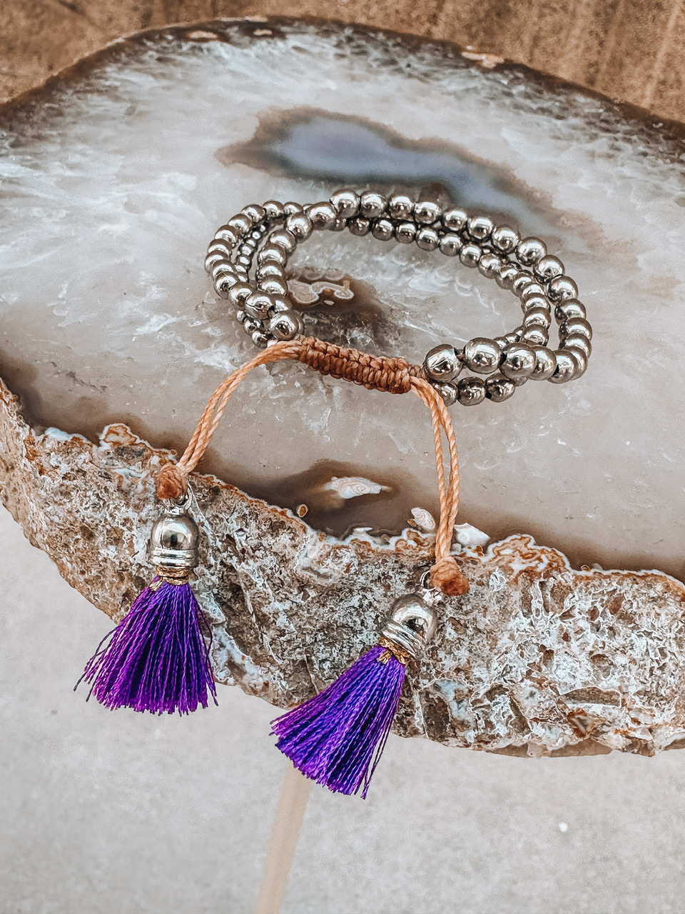Pulseira versátil sendo 3 voltas com um único fêcho de cordinhas ajustáveis ao pulso. O detalhe dos pingentinhos são puro charme!!