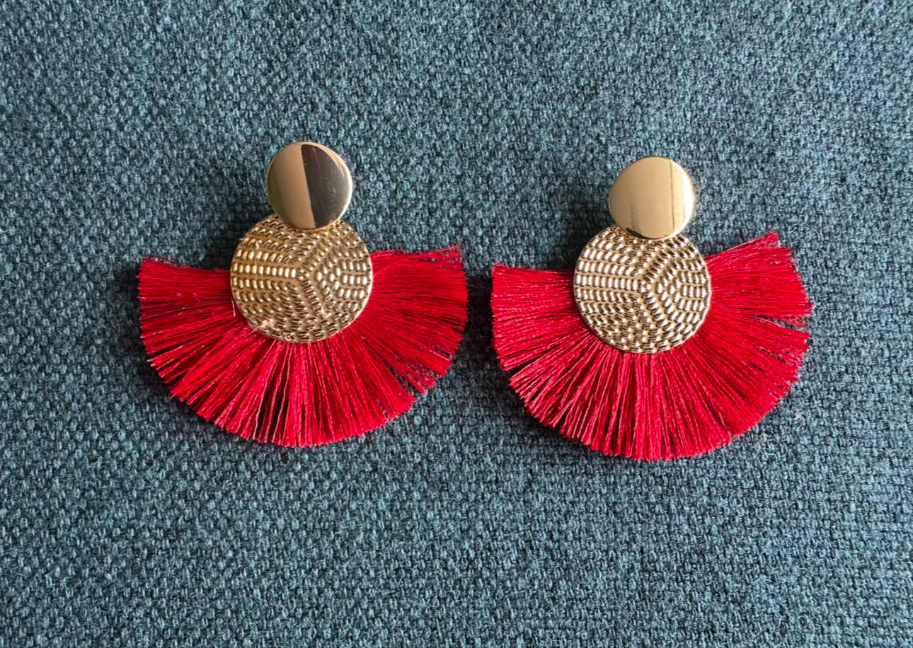 Brincos Dourados Leque Vermelho