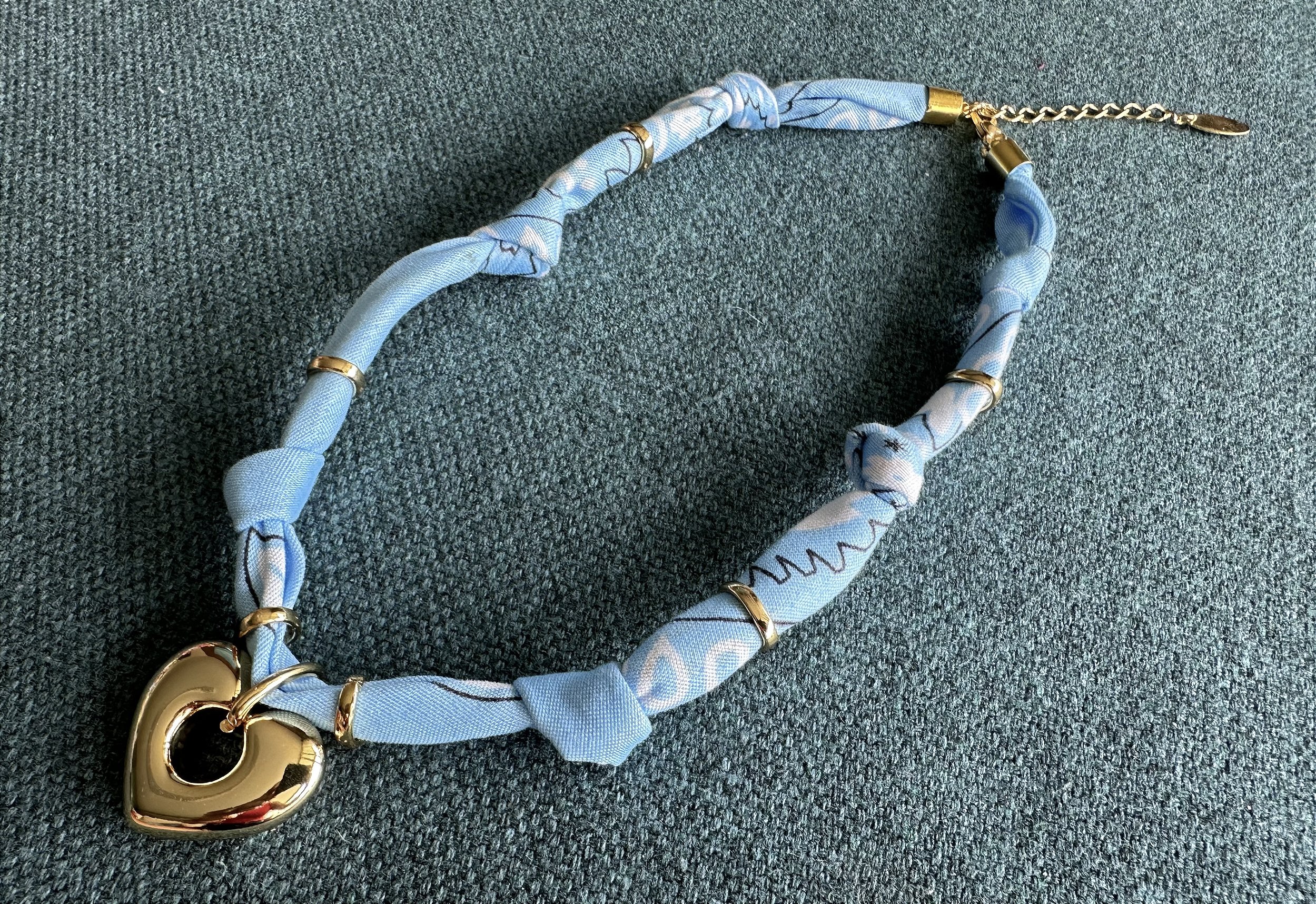 Colar Bandana Azul Bebê com Pingente Coração