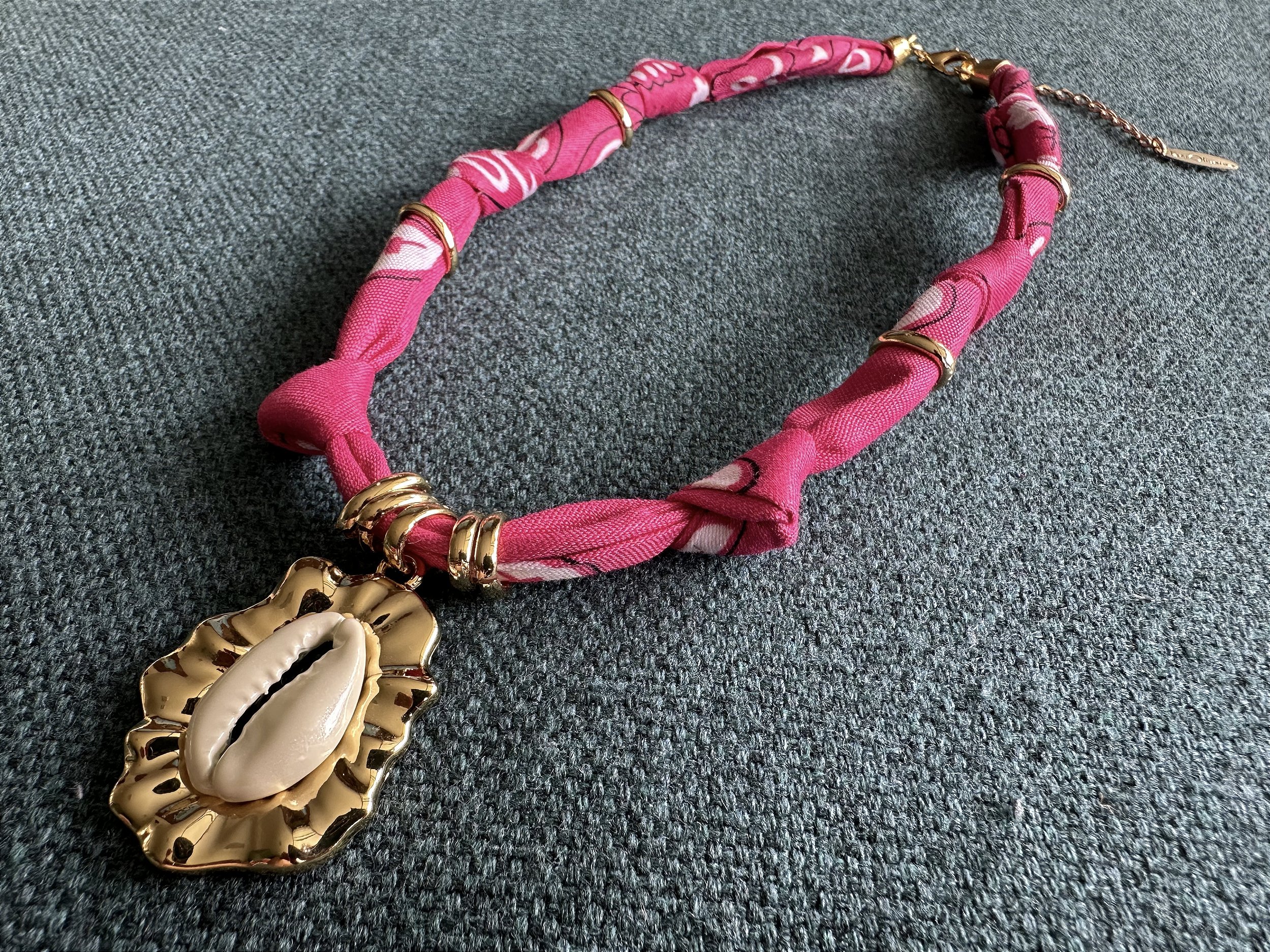 Colar Bandana Rosa Pink com Pingente Búzio