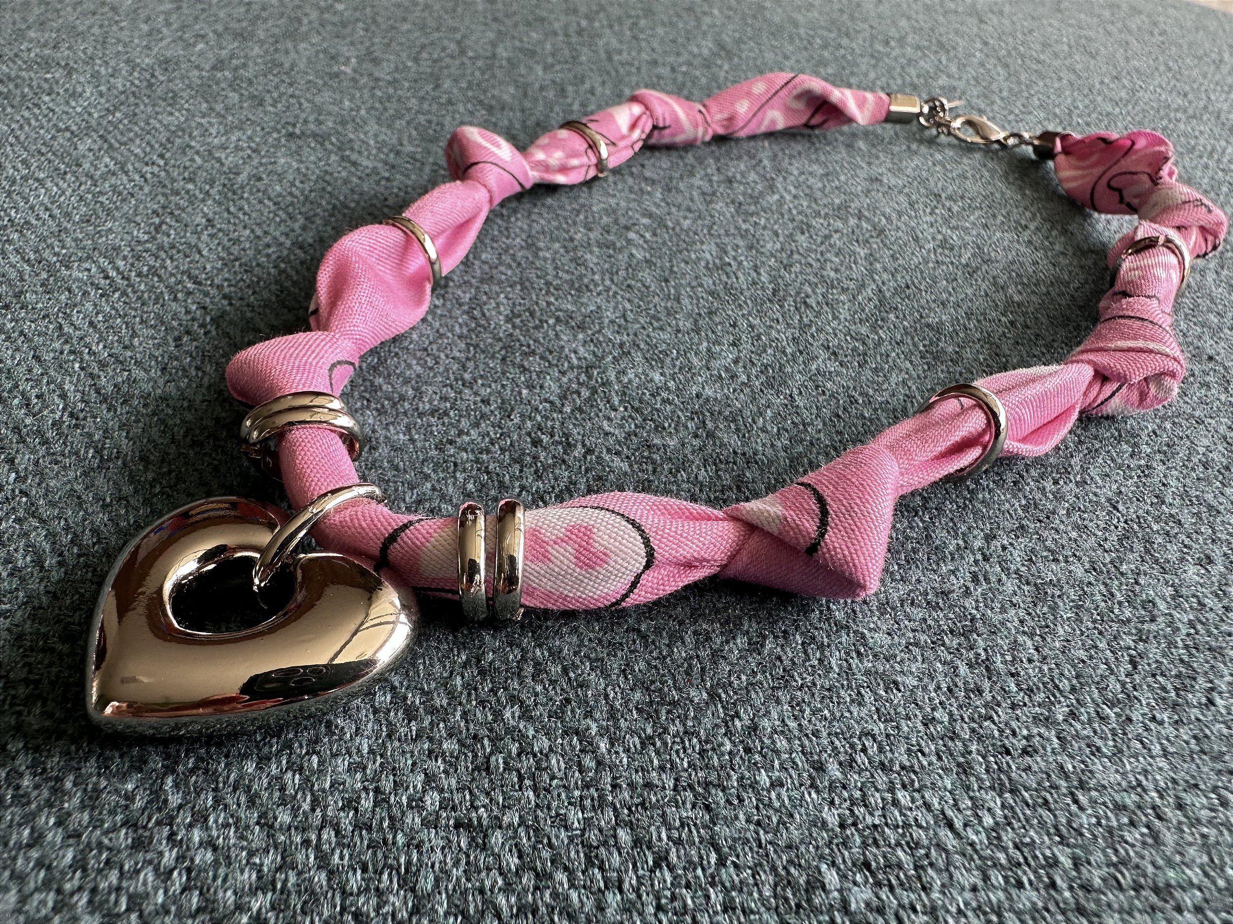 Colar Bandana Rosa Claro com Pingente Coração