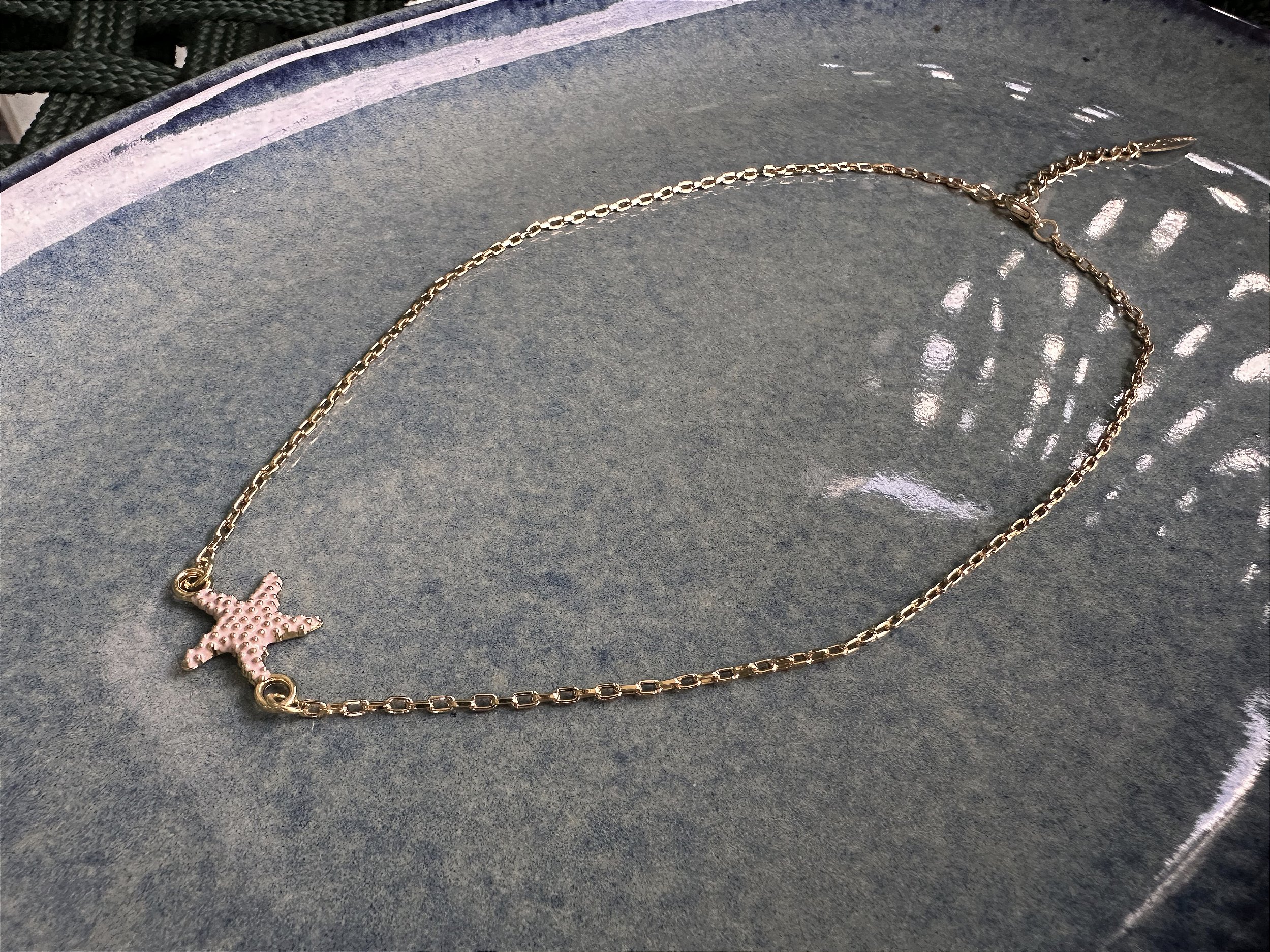 Colar choker feito com correntinha dourada com pingente estrela.