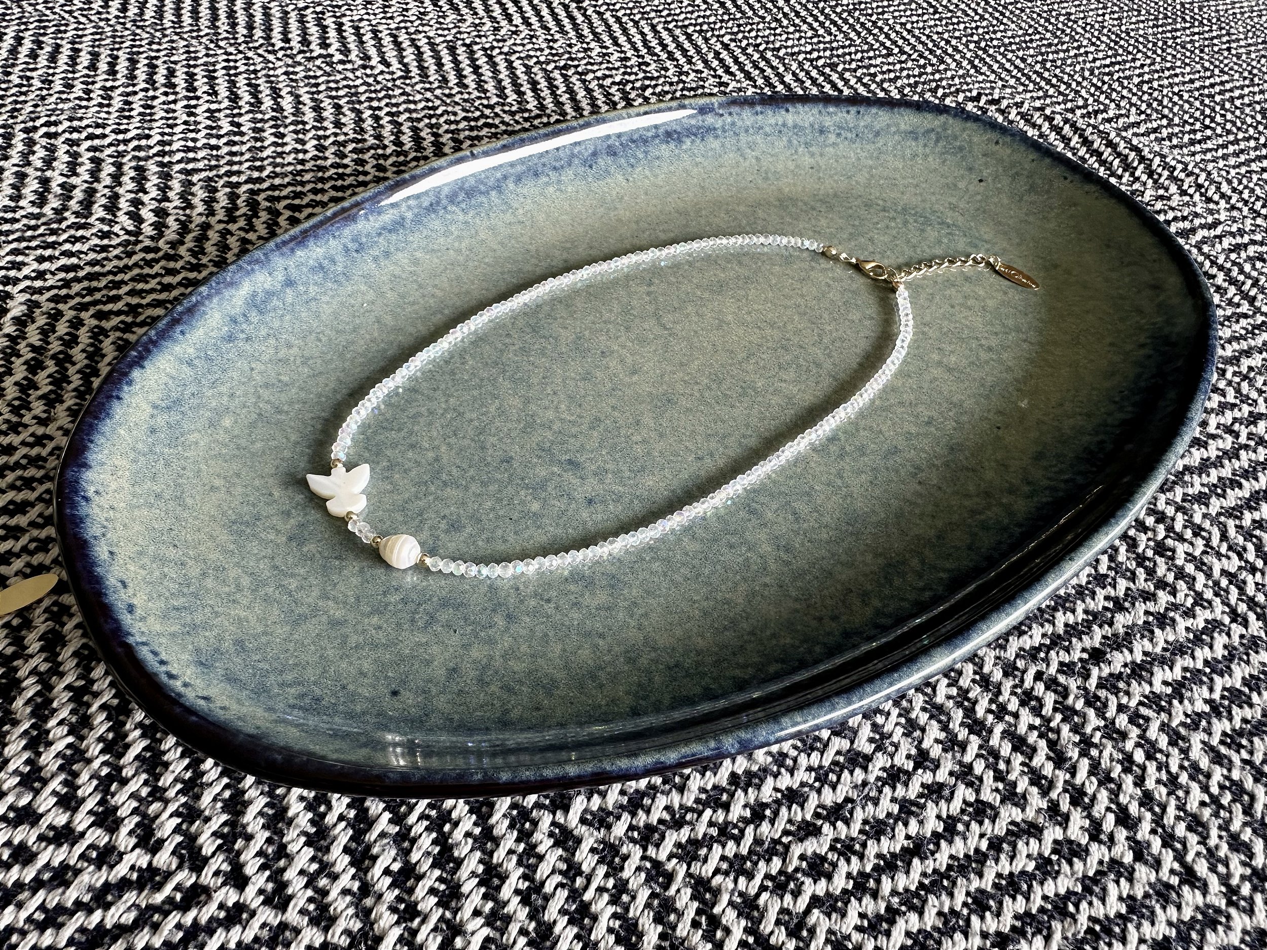 Colar super delicado feito com mini cristais e pingente central.