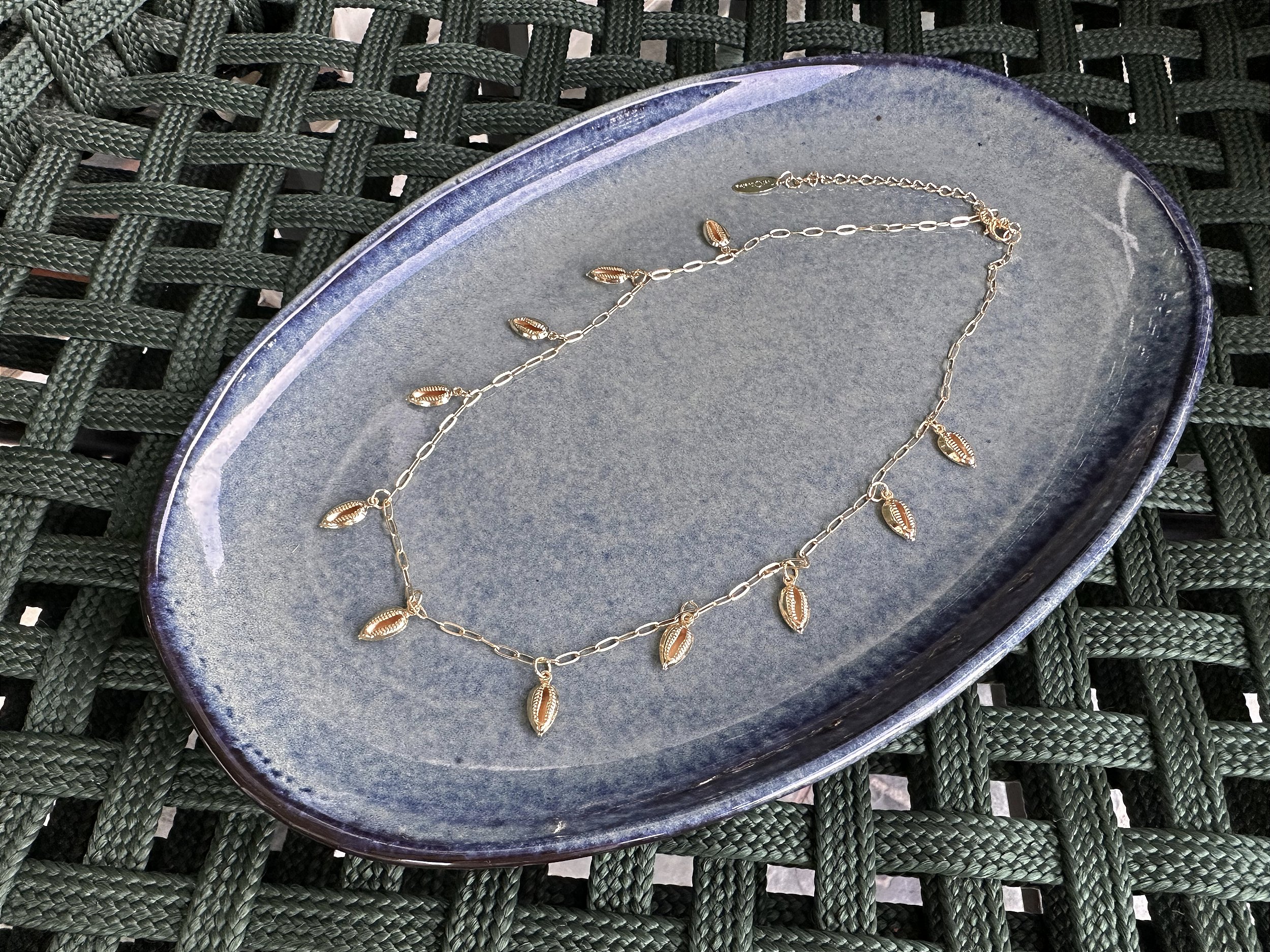 Colar de correntinha dourada super delicado, com detalhe de pingentes de gotinhas.