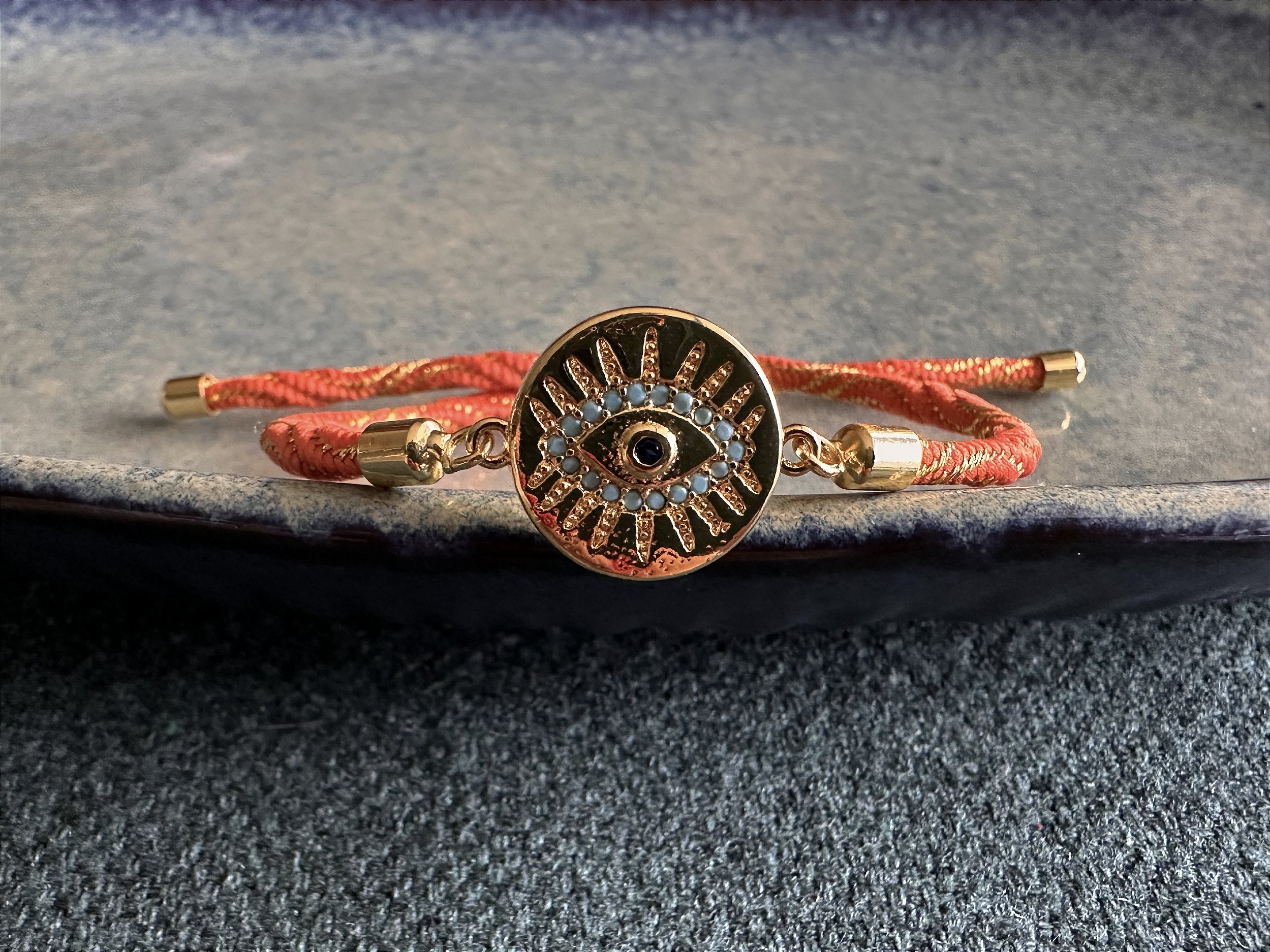 Pulseira Cordão Laranja com Olho Grego Dourado